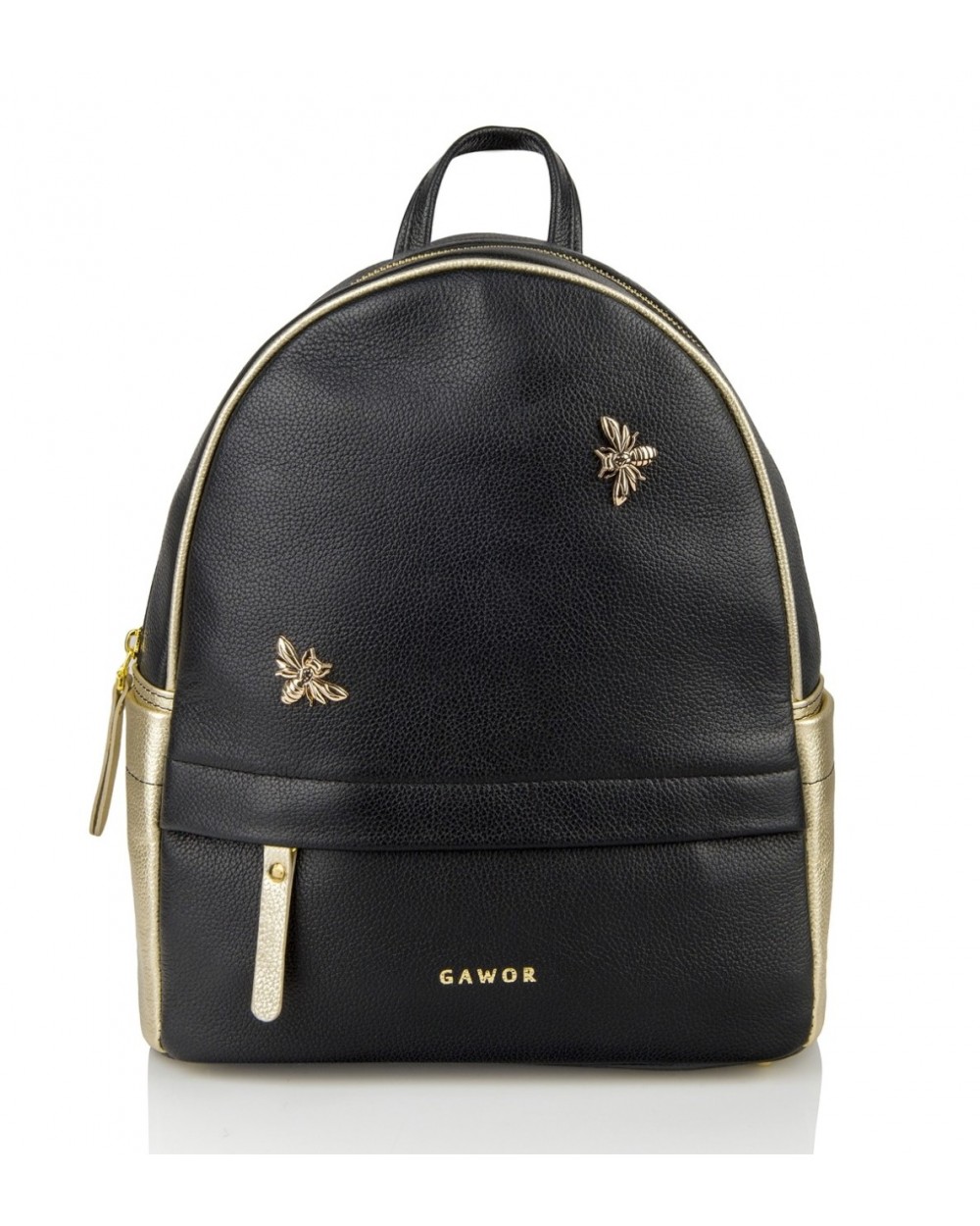 Plecak skórzany damski Gawor czarno-złoty to produkt wykonany z naturalnej skóry. Producentem jest luksusowa polska marka Gawor. Przód plecaka zdobią niewielkie pszczoły. Z boku znajdują się kieszonki w złotym kolorze. Plecak jest dostępny również w wersji białej. To świetne rozwiązanie dla kobiet, które cenią sobie wygodę i prowadzą aktywny tryb życia, a jednocześnie chciałyby zachować elegancki styl.