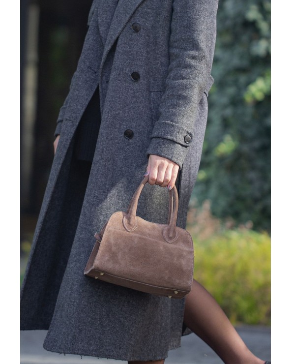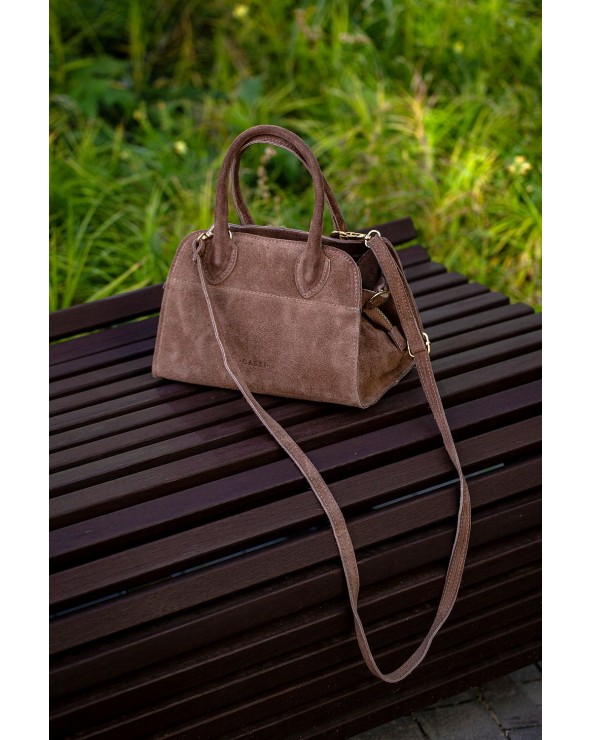 Mała zamszowa torebka a'la Polene czekoladowa, opis produktu: